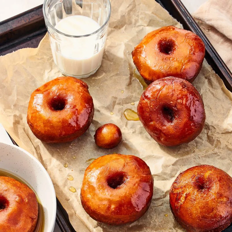 - Plonger ensuite les beignes et les trous de beigne, un par un, dans le sirop d’érable. Égoutter, puis laisser tiédir avant de déguster.