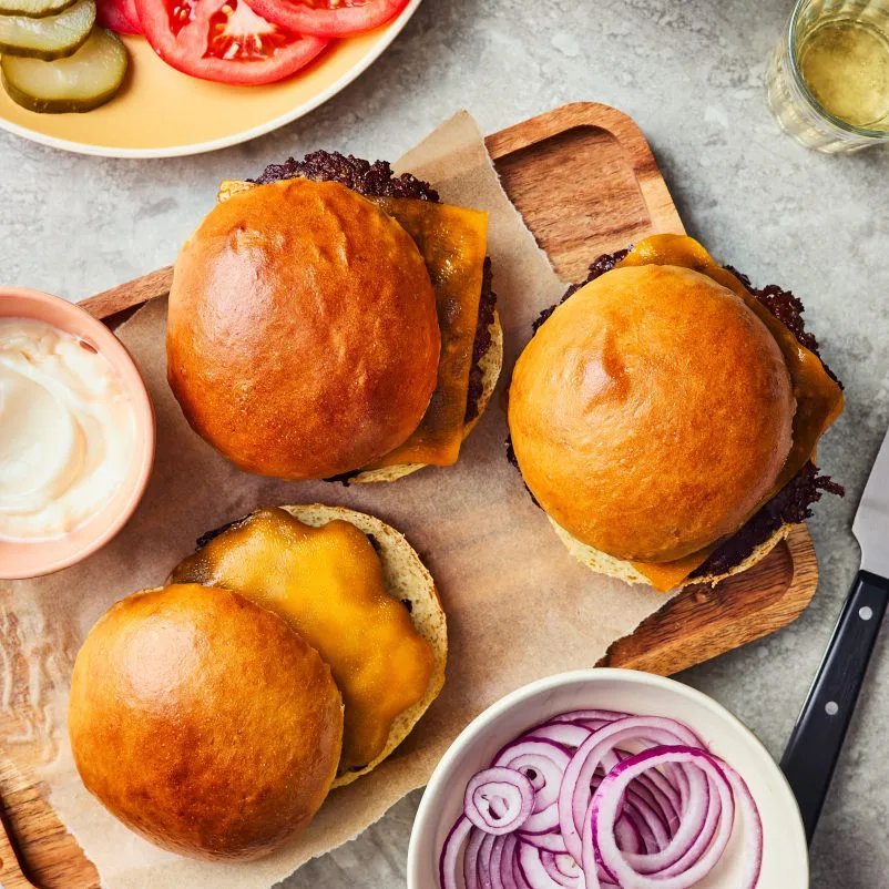 Dégonfler la pâte et séparer en 6 boules de taille similaire. Placer celles-ci sur une plaque de cuisson recouverte d’huile ou d’un tapis en silicone. Laisser monter environ 30 minutes, puis badigeonner leur surface de beurre.