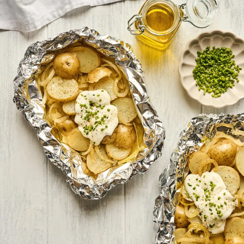 - Griller au barbecue environ 30 minutes, ou jusqu’à ce que les pommes de terre soient bien cuites.
