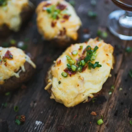 - Ajouter la crème sûre, le 3/4 du prosciutto, le 3/4 des oignons verts, le Grana Padano puis saler et poivrer. Mélanger vigoureusement pour défaire la plupart des gros morceaux. Recouvrir une grande plaque de cuisson de papier parchemin et déposer les patates dessus. Remplir les patates du mélange et enterrer de fromage fumé.