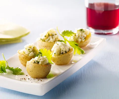 - Variantes : Vous pouvez remplacer le fromage bleu par du saumon fumé haché et la coriandre par de l'aneth. Il est aussi possible de remplacer le bleu par de la tapenade, du pesto ou de la tomate séchée.