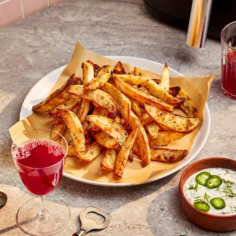 - Déposer les quartiers dans le « air fryer », puis enfourner environ 20 minutes en les brassant quelques fois, jusqu’à ce qu’ils soient bien dorés et tendres.